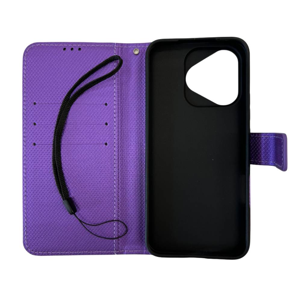 Honor 400 Lite lila fliptok bankkártya tartóval, csuklópánttal