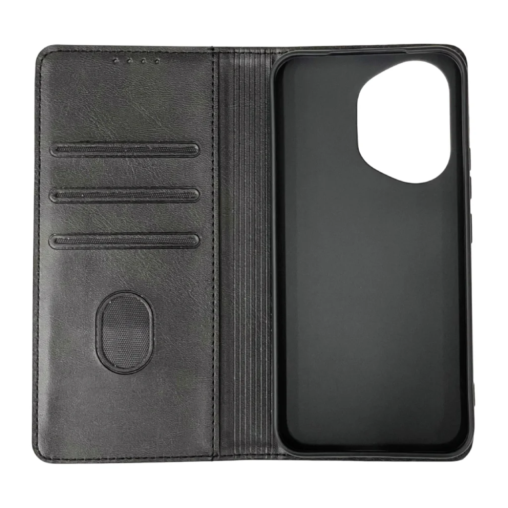 Honor 400 mágneses PU bőr fliptok kártyatartóval pánt nélküli fekete Alphajack