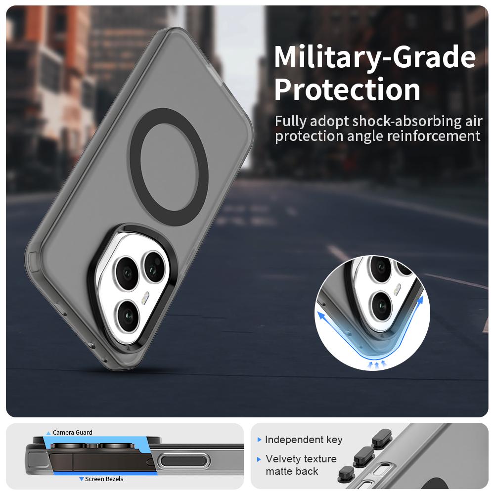 MagSafe kompatibilitás és erős tapadás: A beépített MagSafe mágneses gyűrű lehetővé teszi a zökkenőmentes vezeték nélküli töltést ("Wireless charging", "Magnetic charging") (az ehhez kompatibilis telefonok esetében), és biztosítja a MagSafe kiegészítők (pl. mágneses pénztárcák "Charging wallet", autós tartók) erős és stabil rögzítését. Az "Excellent Adsorption Capacity" garantálja, hogy a tartozékok szilárdan tapadnak, így magabiztosan élvezheted minden pillanatot.