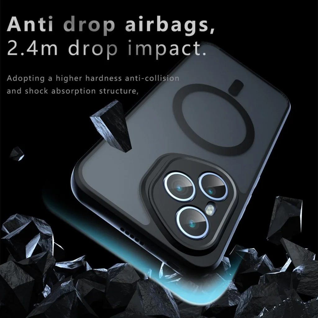 - MagSafe kompatibilitás: A beépített mágneses gyűrű révén tökéletesen kompatibilis a MagSafe töltőkkel és tartozékokkal, biztosítva a zökkenőmentes használatot.