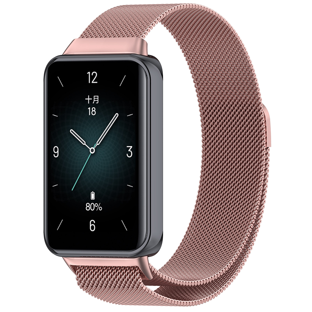 - Kifinomult rózsaarany árnyalat: A szíj elegáns rózsaarany színe azonnal feldobja okosóráját, és stílusos kiegészítővé varázsolja, amely bármilyen öltözékhez passzol.