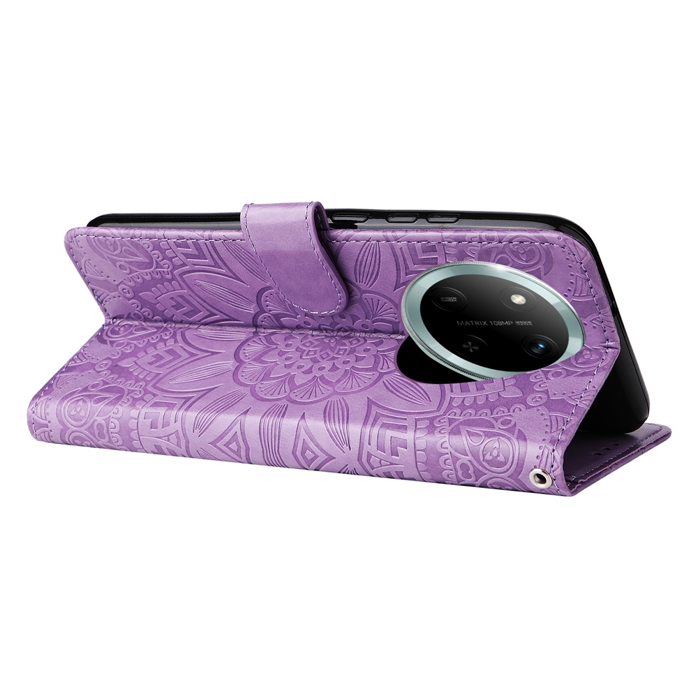 Honor Magic 7 Lite napraforgó mintás dombornyomott fliptok – lila