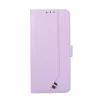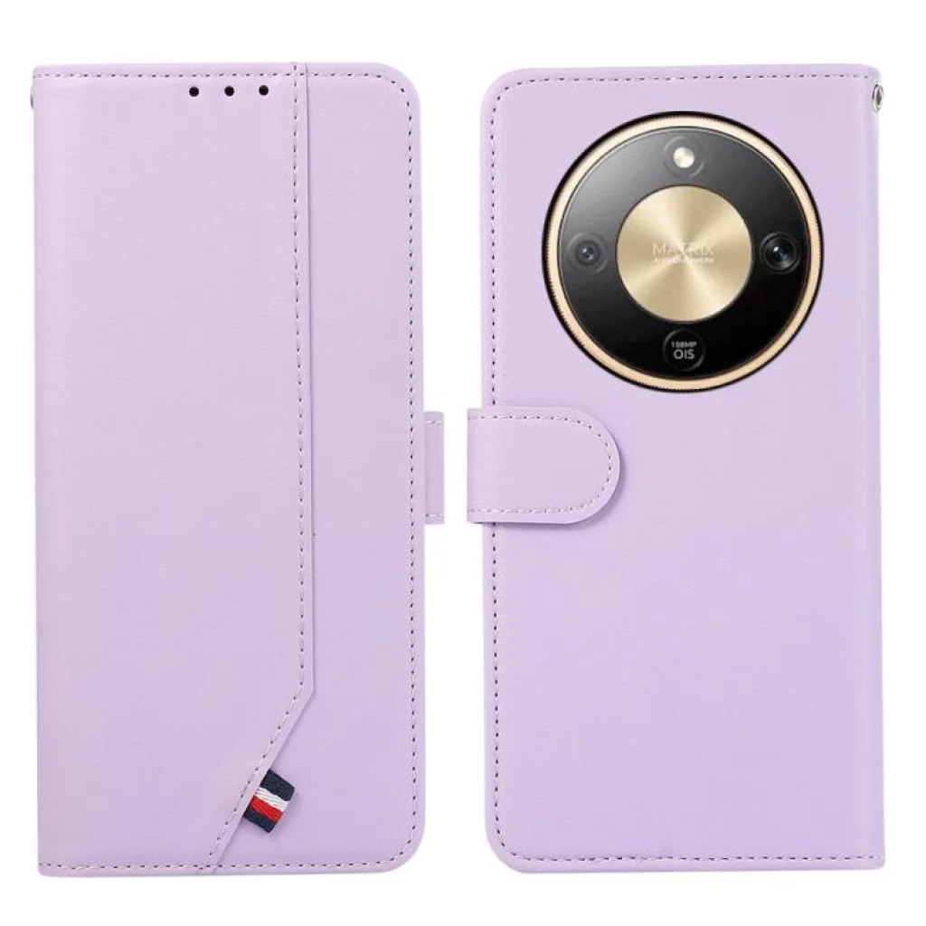 Ez a fliptok prémium minőségű PU bőrből készült, amely nemcsak esztétikus, hanem kellemes tapintású és bőrbarát felületet biztosít. A letisztult és finom textúra elegáns megjelenést kölcsönöz a toknak, miközben erős légáteresztő képességgel is rendelkezik. A lila szín modern és kifinomult. A tok előlapját egy diszkrét, stilizált háromszínű (piros-fehér-kék) csík díszíti, amely egyedi és elegáns megjelenést kölcsönöz a designnak.