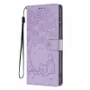 Honor Magic8 Lite fa macska dombornyomott flip vegán bőr telefon tok (lila)