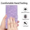 - Egyedi dombornyomás: A tok belső felén egy gyönyörű, dombornyomott cseresznyevirágos fa és egy játékos macska motívum található, amely egyedi és személyes megjelenést kölcsönöz a telefonjának. A külső felület elegáns, egyszínű lila.