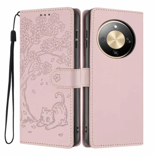 Kifinomult stílus és megbízható védelem a Honor Magic8 Lite készülékedhez! Ez a prémium minőségű, rózsaarany flip tok egyedi dombornyomott mintázatával – egy bájos macska és virágzó cseresznyefa – nem csupán óvja telefonodat, hanem egyedi és elegáns megjelenést is kölcsönöz neki. A funkcionalitás és esztétika tökéletes ötvözete a mindennapokra.