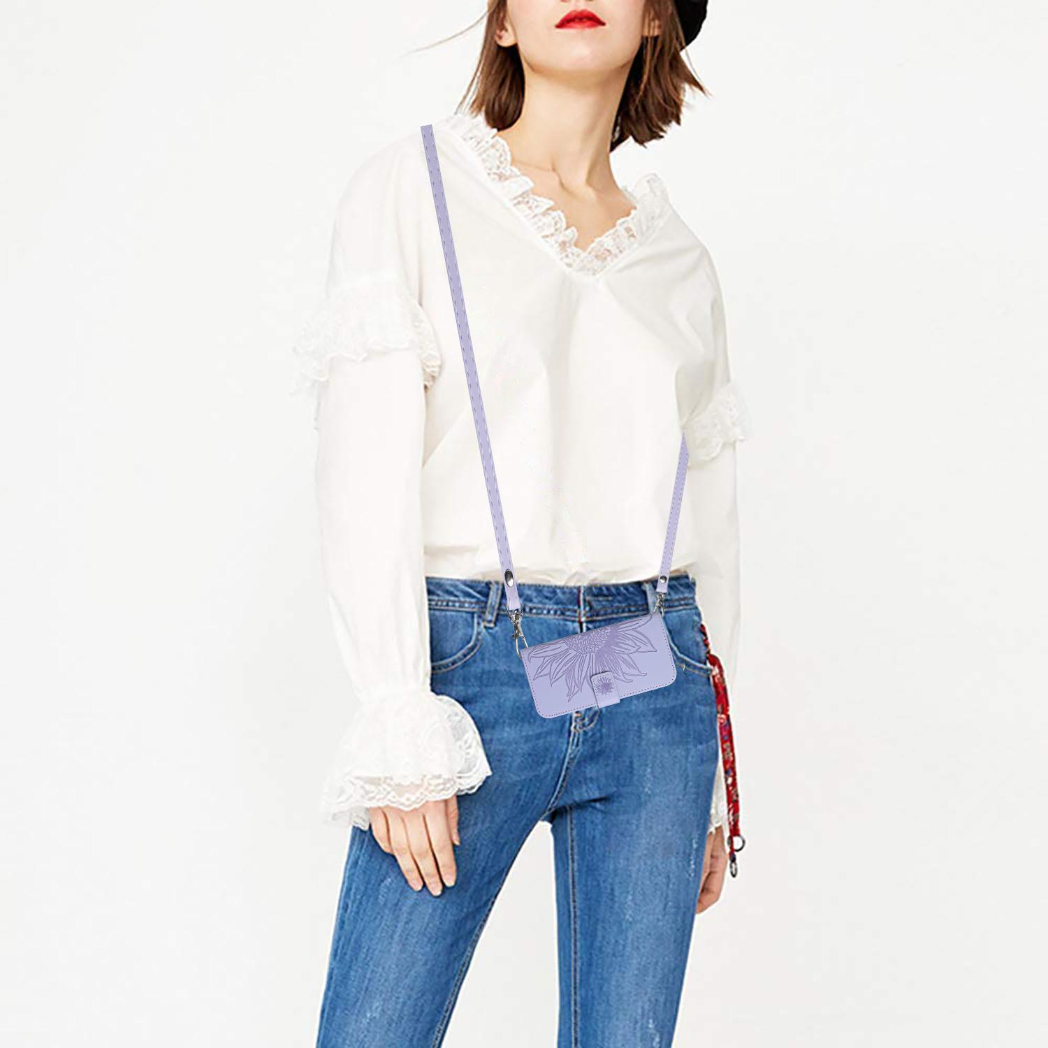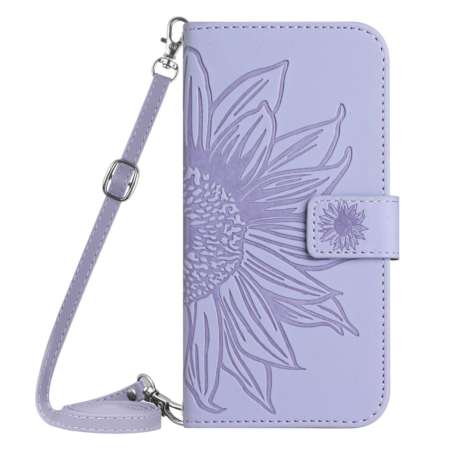 Honor X5c Plus bőrhatású, napraforgó mintás tok nyakpánttal (lila)