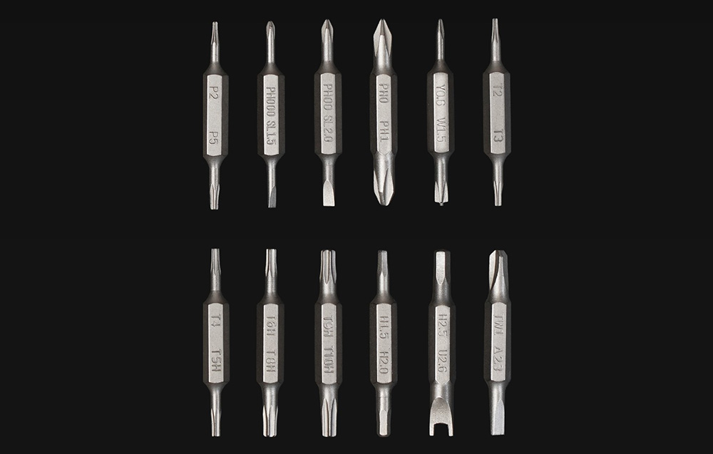 In the set with the screwdriver, you will also find 12 double-sided bits. This means that you get 24 of the most popular types. They exhibit a hardness of up to 60 HRC and, what's more, are made of high-quality S2 steel. This makes them robust and resistant to mechanical damage, wear or rust. They will work perfectly when repairing laptops, watches, games consoles, toys, drones and many other devices.