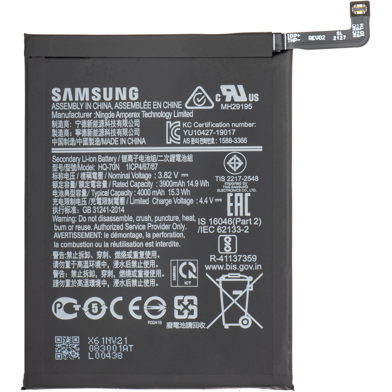 HQ-70N akkumulátor Samsung Galaxy A11 A115-höz. Samsung licenc alapján készült pótalkatrész, amelyet a telefon sérült akkumulátorának cseréjére használnak. Cseréld ki a régi akkumulátort, és szereld fel a telefonodat egy új, eredeti akkumulátorral, amely biztosítja számára a szükséges energiát.