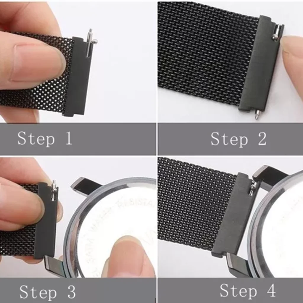 - Egyszerű telepítés: A beépített gyorskioldó stiftek (quick-release pins) lehetővé teszik a szíj könnyed fel- és levételét, szerszámok nélkül. Változtassa meg órája stílusát másodpercek alatt!