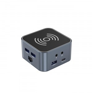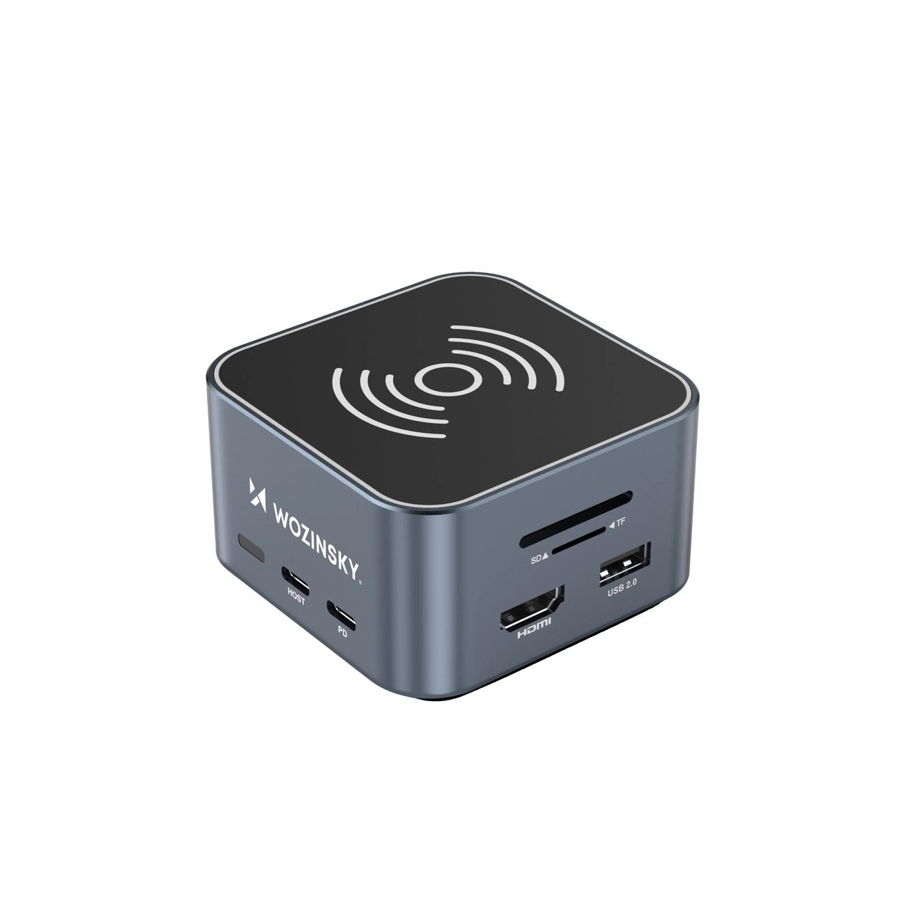 Wozinsky WHBC09Y8S 12-az-1-ben USB-C Hub, Multifunkcionális, Vezeték Nélküli Töltés, Alumínium, 15 cm-es Kábellel – Szürke A Wozinsky WHBC09Y8S multifunkcionális USB-C hub egy fejlett csatlakozási és energia központ laptopokhoz, tabletekhez vagy okostelefonokhoz. 12 portot kínál, beleértve a gyors HDMI 4K, USB 3.2 Gen2 10Gbps portokat, SD/TF kártyaolvasókat, RJ45 Ethernetet, audió csatlakozókat és 15W vezeték nélküli töltést. A DP Alt Mode 1.4 szabvány támogatása lehetővé teszi képek megjelenítését akár 4K/60Hz minőségben. Legyen szó több kijelzőn való munkáról, adatok villámgyors átviteléről vagy eszközök gyors töltéséről - ez a hub bármilyen feladatot megold. A beépített chipek szavatolják a stabilitást és a széles körű kompatibilitást, az elegáns alumínium ház pedig kiváló hőelvezetést biztosít. Ideális megoldás igényes felhasználók számára, akiknek megbízható dokkoló állomásra van szükségük munkához és szórakozáshoz. ~ Műszaki adatok:- Márka: Wozinsky