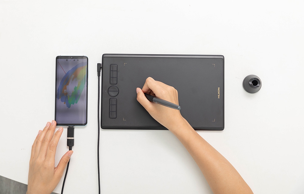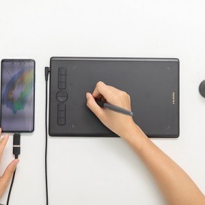 A mozdulatokhoz illeszkedő toll: A mellékelt Huion PW100 digitális toll elemmentes, könnyű és rendkívül precíz, támogatja a 8192 nyomásfokozatot, és nagy folyékonyságot biztosít (>220PPS).