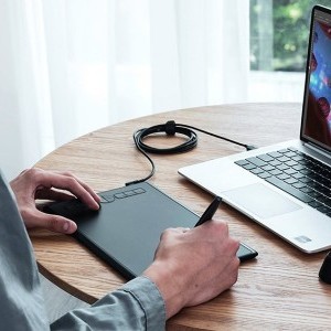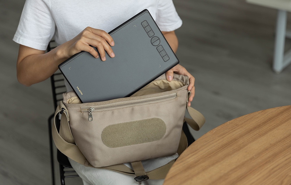 Karcsú forma, a lehetőségek hatalma: A Huion H580X táblagép minimalista és könnyű kialakításával tűnik ki - mindössze 343 g súlyú és csak 8 mm vastag. A készüléket a mobilitás és a kényelem jegyében tervezték, így könnyen elfér egy táskában, és kevés helyet foglal az íróasztalon. Esztétikus kivitelezése kiemeli kreatív jellegét, a munkafelület arányai pedig a nagyfokú cselekvési szabadságot biztosítják. Ez az eszköz igazi művészeknek készült!