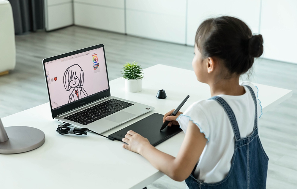 Természetes lenyomatok, mint a papíron: A teljes panelfedés és a papírt imitáló speciális felület révén a H580X táblagépen való rajzolás és írás rendkívül valósághű és kényelmes élményt nyújt.