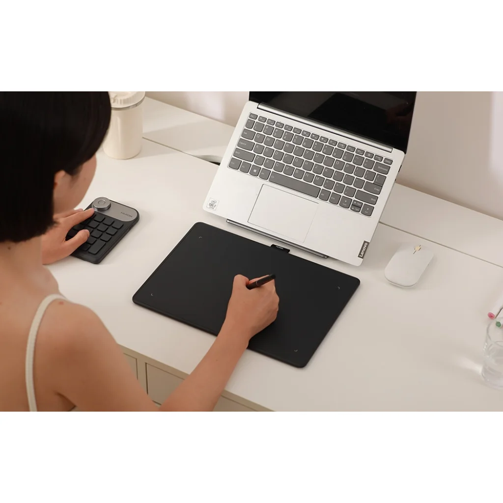 A HUION Inspiroy Frego M egy grafikus táblagép azoknak, akik értékelik a letisztult munkaterületet és az egyszerűséget. Támogatja a Bluetooth 5.0 kapcsolatot, így a táblagépet kábelek nélkül használhatja. Kompakt mérete, könnyű súlya és strapabíró akkumulátora (akár 24 órás használat egyetlen feltöltéssel) miatt kiválóan alkalmas mindennapi használatra. A PW550S tollat PenTech 3.0+ technológiával is megtalálod, amely 60°-os dőléstámogatást és nagy pontosságot kínál rajzolás közben.