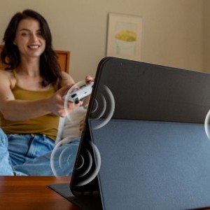 A legjobb hang és kép: A táblagép két oldalán szimmetrikusan elhelyezett négy hangszóró térhatású sztereó hangzást hoz létre a kivételes élményért filmnézés, zenehallgatás vagy játék közben. Az előlapon egy 8 MP-es kamera található, amely ideális videokonferenciákhoz, a hátlapon pedig egy 13 MP-es kamera, amely tökéletes fényképek készítéséhez vagy olyan eszközök használatához, mint például a HiPaint kép beillesztése.