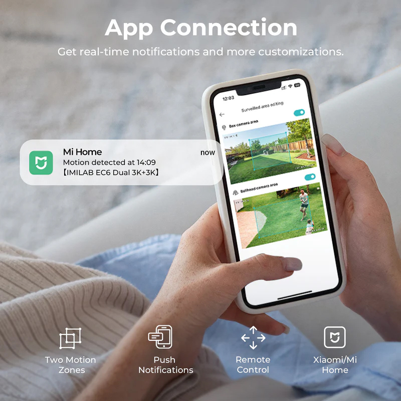 Az iMILAB EC6 Dual 3K+3K egy innovatív biztonsági kamera két lencsével és csúcstechnológiával, amelyek két 3K felbontású videofolyamot biztosítanak. Az alsó lencse automatikusan követi a mozgásokat 360 fokos szögben, míg a felső lencse fix marad, így folyamatos megfigyelést biztosít zavaró tényezők nélkül. Könnyen telepíthető, és kompatibilis a hangalapú asszisztensekkel, így tökéletes megoldás otthoni megfigyelésre. A kamera mesterséges intelligenciát használ a személyek, járművek és kerékpárok pontos felismerésére, csökkentve a téves riasztásokat. Kétirányú audió kapcsolatának köszönhetően valós időben kommunikálhat családtagokkal, kézbesítőkkel vagy látogatókkal. Okos és hatékony éjszakai látással rendelkezik, amely mozgásérzékeléskor teljes színmódra vált az energia megőrzése érdekében. Automatikus veszélyelhárító funkciói, mint a sziréna, villanó fény vagy előre felvett üzenetek használata, távolról is elriasztják a behatolókat. A testreszabható megfigyelési zónák és valós idejű hozzáférés lehetősége bárhonnan elérhető, a 360 fokos forgatás és 90 fokos dőlésszög vezérlése egyetlen alkalmazással történik. Az IP65-ös minősítésű kamera strapabíró, -30 és 60 Celsius fok között működik, eső és por ellen védett. Biztonságos helyi vagy felhő alapú tárolási lehetőségeket biztosít, és 24/7 folyamatos megfigyelést tesz lehetővé. Kompatibilis a Google Asszisztenssel és az Alexával, így hangutasításokkal is irányítható. A kamera a Xiaomi ökoszisztéma részeként közvetlen élő nézetet és felvétel visszajátszását kínálja telefonon keresztül. Tartozékai közé tartozik a felhasználói kézikönyv, rögzítő sablonok, csavar készlet és hálózati adapter.