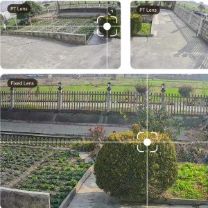 - Mozgásérzékelés és automata követés: A PT lencse automatikusan követi az észlelt mozgást a beállított zónákon belül, így Ön mindig képben lesz az eseményekkel.