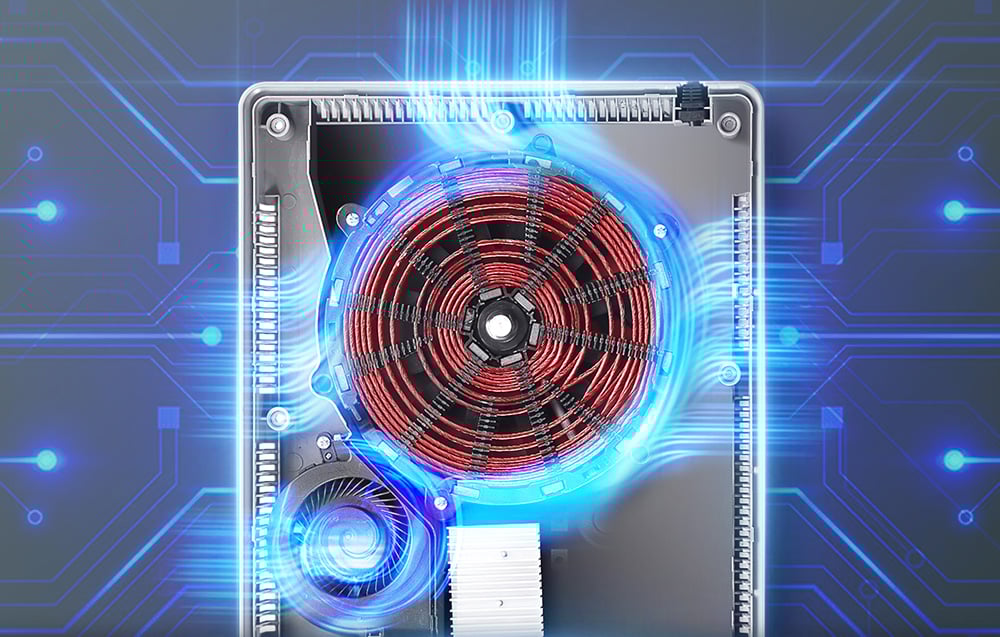A fejlett hűtőrendszer rejtett turbóventilátorral biztosítja a hatékony hőelvezetést, miközben alacsony zajszintet (kevesebb mint 42 dB) biztosít. Ezáltal a főzőlap még kis helyiségekben is alkalmas.