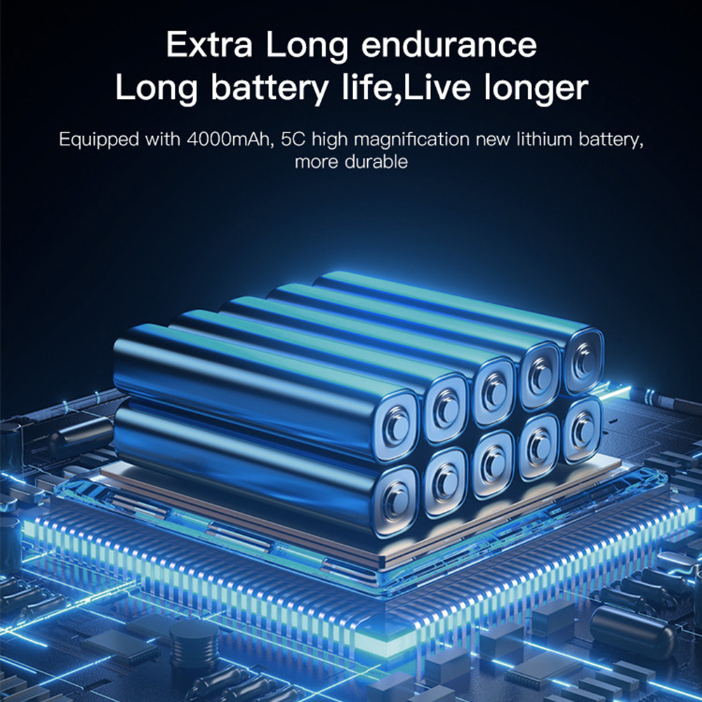 - Hosszú akkumulátor élettartam: A beépített 4000mAh-s, 5C nagymagnifikációjú lítium akkumulátor kivételesen hosszú üzemidőt és tartósságot garantál, így több eszközt is felfújhat egyetlen töltéssel.