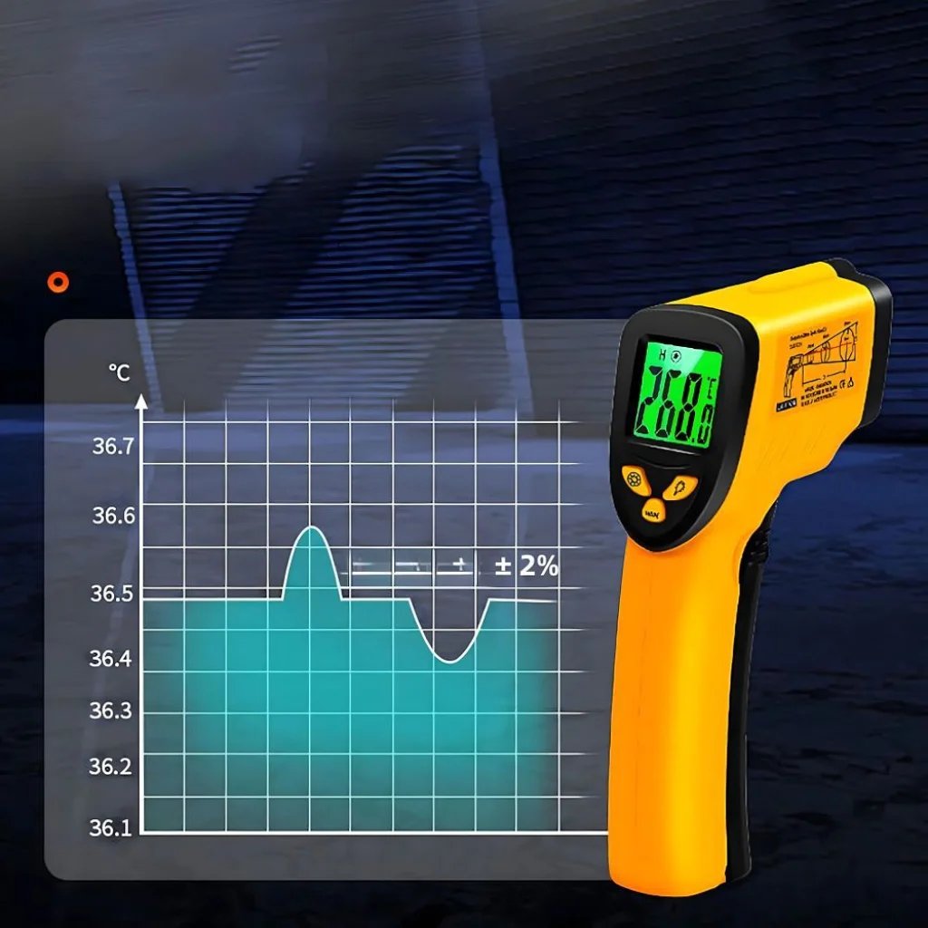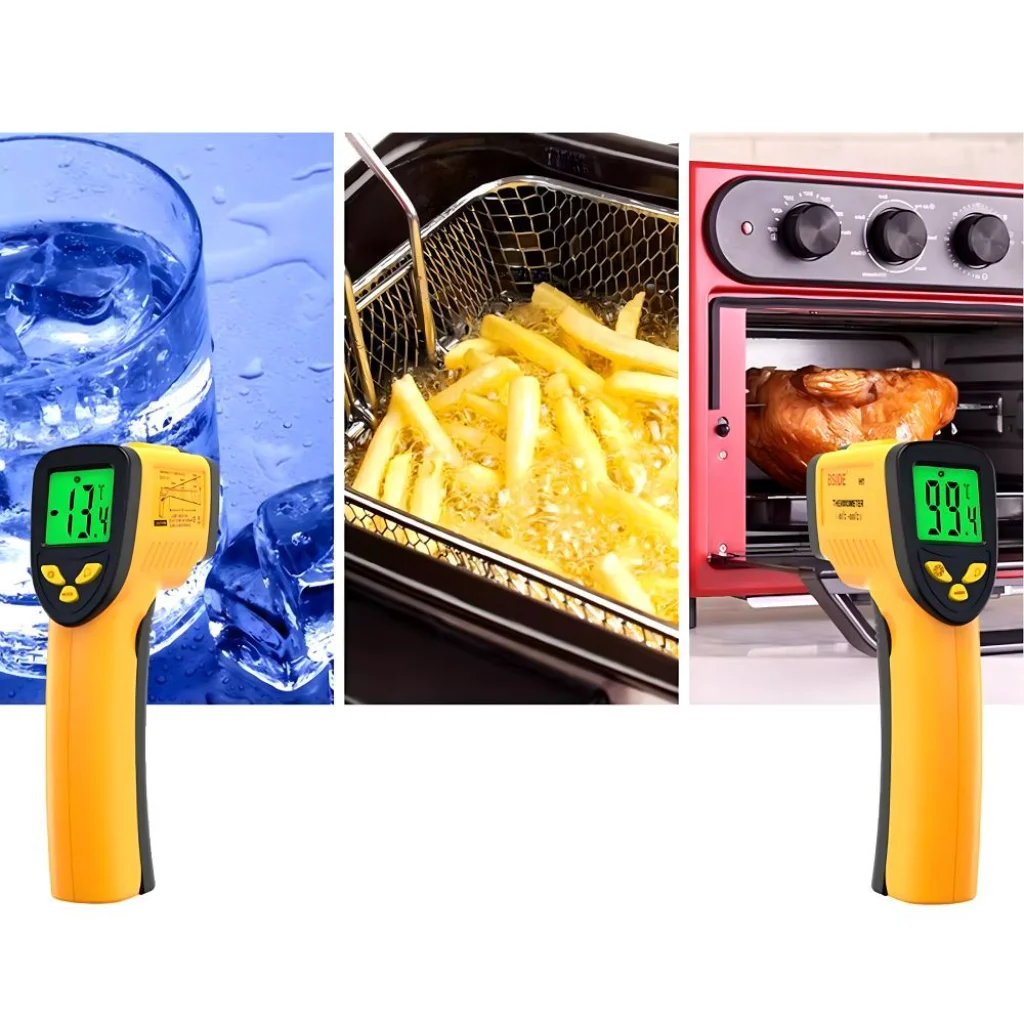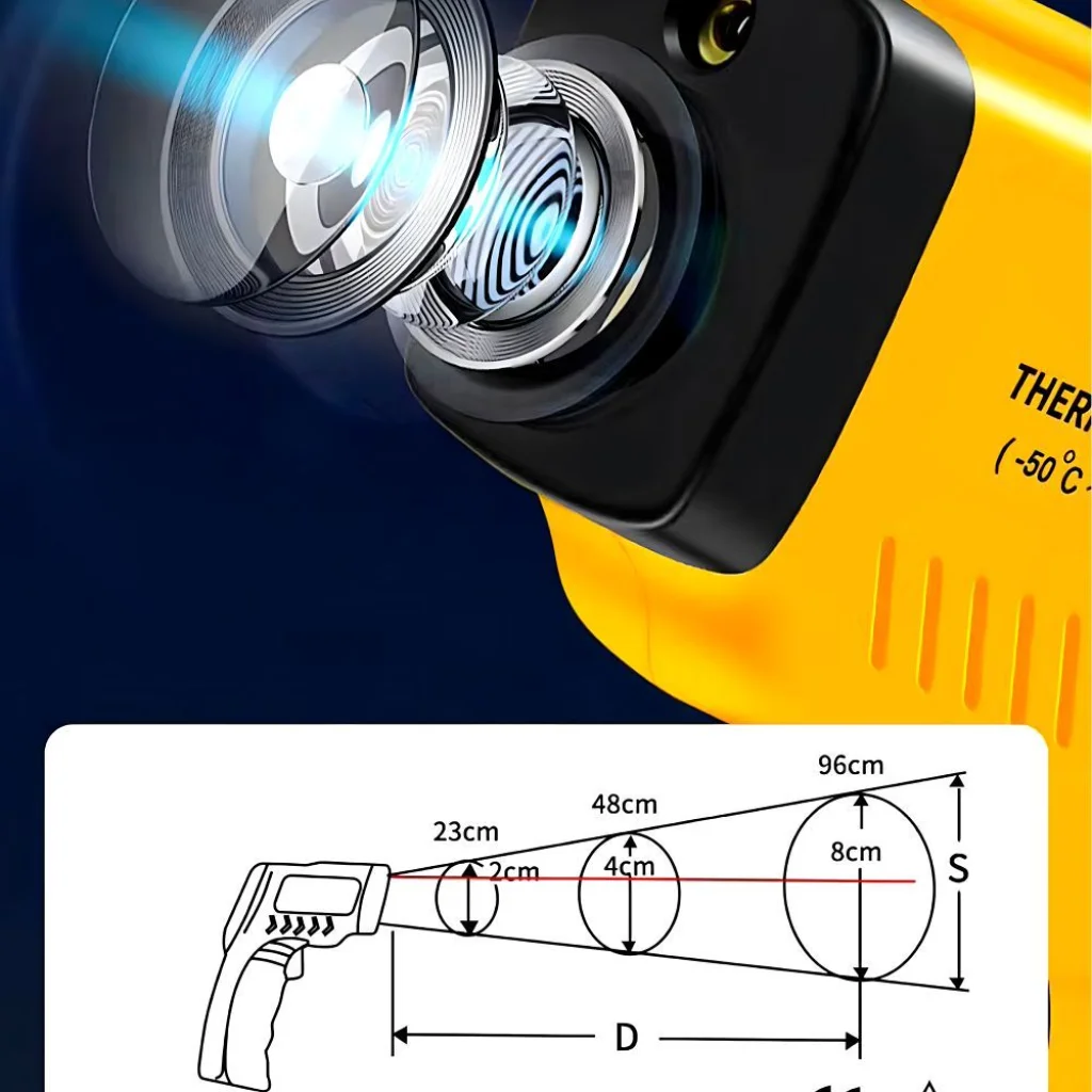 Műszaki adatok: ✔️ Hőmérséklet-tartomány: -50°C-tól +550°C-ig ✔️ Technológia: Infravörös ✔️ Lézeres mutató: Igen ✔️ Kibocsátási arány: Állítható ✔️ Kijelző: LCD háttérvilágítással ✔️ Pontosság: Magas precizitás a széles hőmérséklet-tartományban