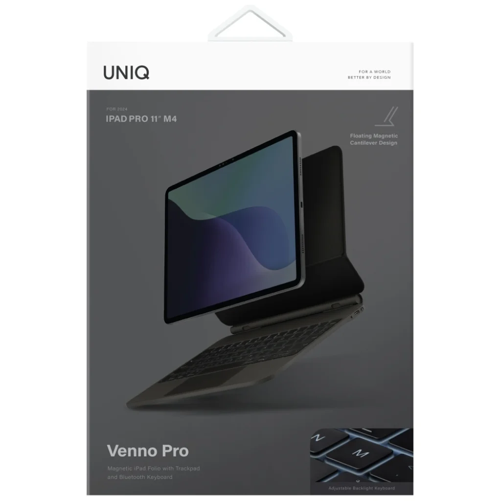 Fedezd fel a UNIQ Venno Pro Mágneses Okos Tokot Billentyűzettel - a védelem, funkcionalitás és elegancia tökéletes kombinációját. Ez a tok tökéletes betekintési szöget biztosít az iPad számára, és a beépített billentyűzet és trackpad sima interakciót tesz lehetővé. A Venno-val az iPad teljesértékű munka-, alkotás- és szórakoztató eszközzé válik.