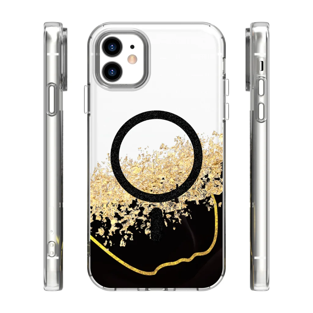 Az epoxi réteg kiemeli a minta mélységét, fényt ad a tok megjelenésének, és olyan látványhatást biztosít, amely idővel sem veszít intenzitásából. Az aranyszínű pöttyök és a lágy tónusátmenetek egy sűrű, dinamikus kompozíciót alkotnak, amely magára vonja a figyelmet és hangsúlyozza a tok térbeli hatását. A dizájn tökéletesen illeszkedik a karakteres, kifinomult megjelenésű kiegészítők trendjéhez.