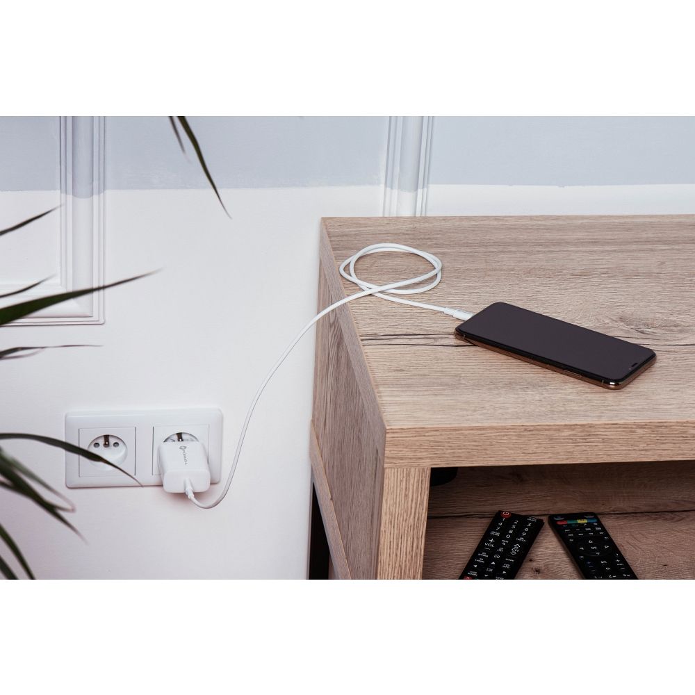 A Forcell F-Energy töltő a legmodernebb gyorstöltési szabványokkal, a PD és QC 4.0 technológiákkal garantálja, hogy készüléke optimális sebességgel töltődjön. Az USB-C kimenet és a csomagban található 1,2 méter hosszú USB-C Lightning kábel tökéletes párost alkotnak. Ez a hosszúság extra kényelmet biztosít, lehetővé téve, hogy okostelefonját kényelmesen használja töltés közben is, legyen szó ágyról, kanapéról vagy íróasztalról.