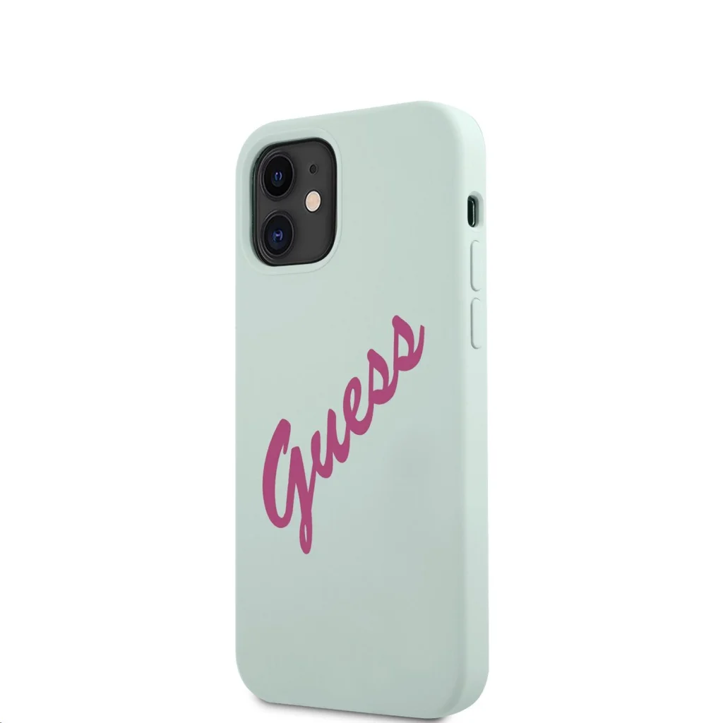 iPhone 12 mini Guess GUHCP12SLSVSBF Silicone Vintage Fuchsia Script tok kék színben