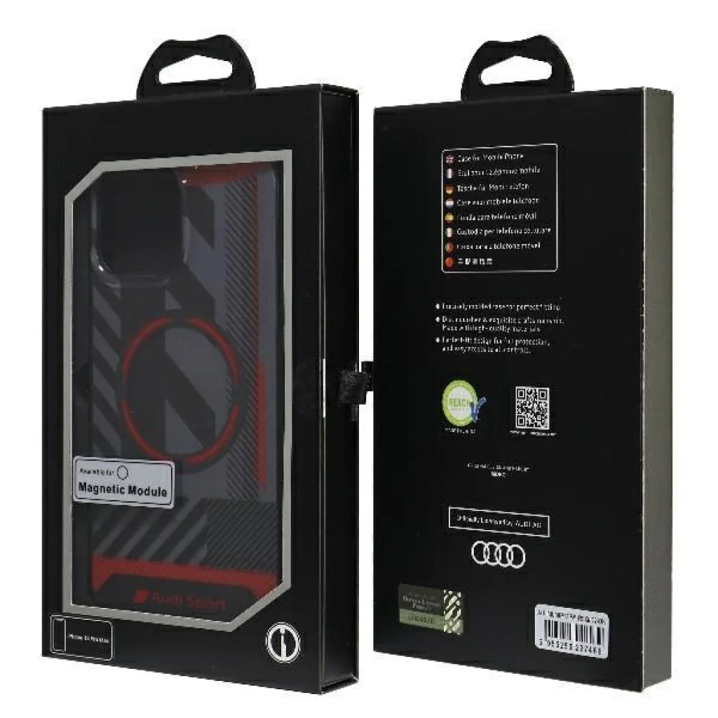 Az Audi IML Sport MagSafe tok az iPhone 13 Pro Max 6.7-hez egy divatos kollekció részeként készült, amely a német autóipari óriás, az elit márka, az Audi együttműködésével jött létre. Ez a futurisztikus tok tökéletesen ötvözi a hihetetlen funkcionalitást egy elit megjelenéssel. Maximális védelmet nyújt telefonodnak, biztosítva a készülék magas szintű védelmét.