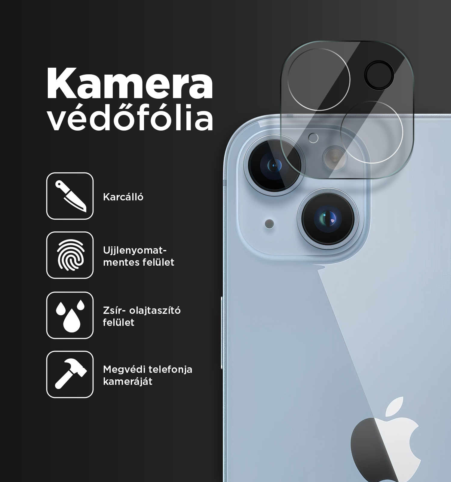 Az alábbi termék a kamera lencse védő mérete miatt csak az iPhone 14 készülékkel kompatibilis!
