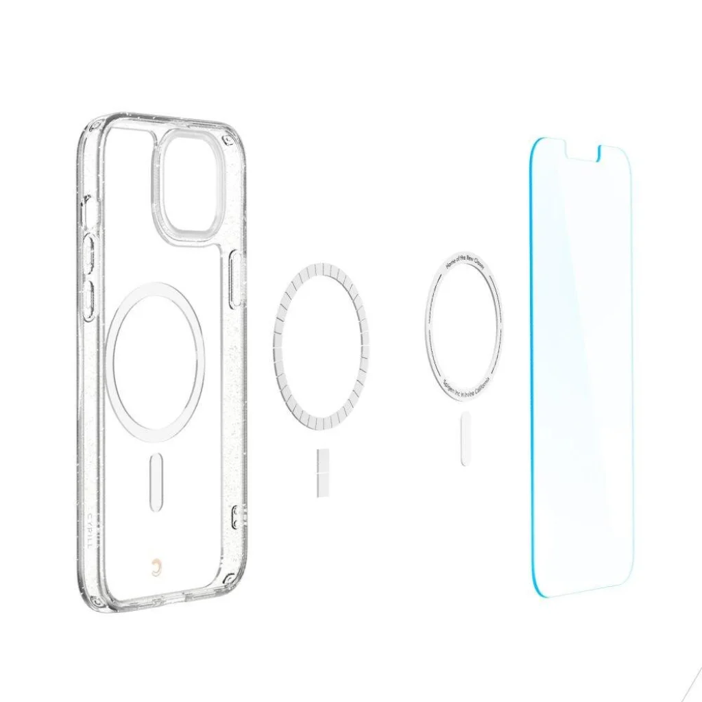 Keresed a tökéletes egyensúlyt a stílusos megjelenés és a kompromisszumok nélküli védelem között iPhone 14 Plus készüléked számára? A Spigen Cyrill Shine MagSafe-kompatibilis Glitter Clear tok és 2db üvegfólia (ACS04942) pontosan ezt kínálja! Ez az egyedülálló csomag egy prémium minőségű, MagSafe-kompatibilis, csillogó átlátszó tokot és két darab kristálytiszta Spigen Glas.TR edzett üvegfóliát tartalmaz, biztosítva készüléked 360 fokos védelmét.
