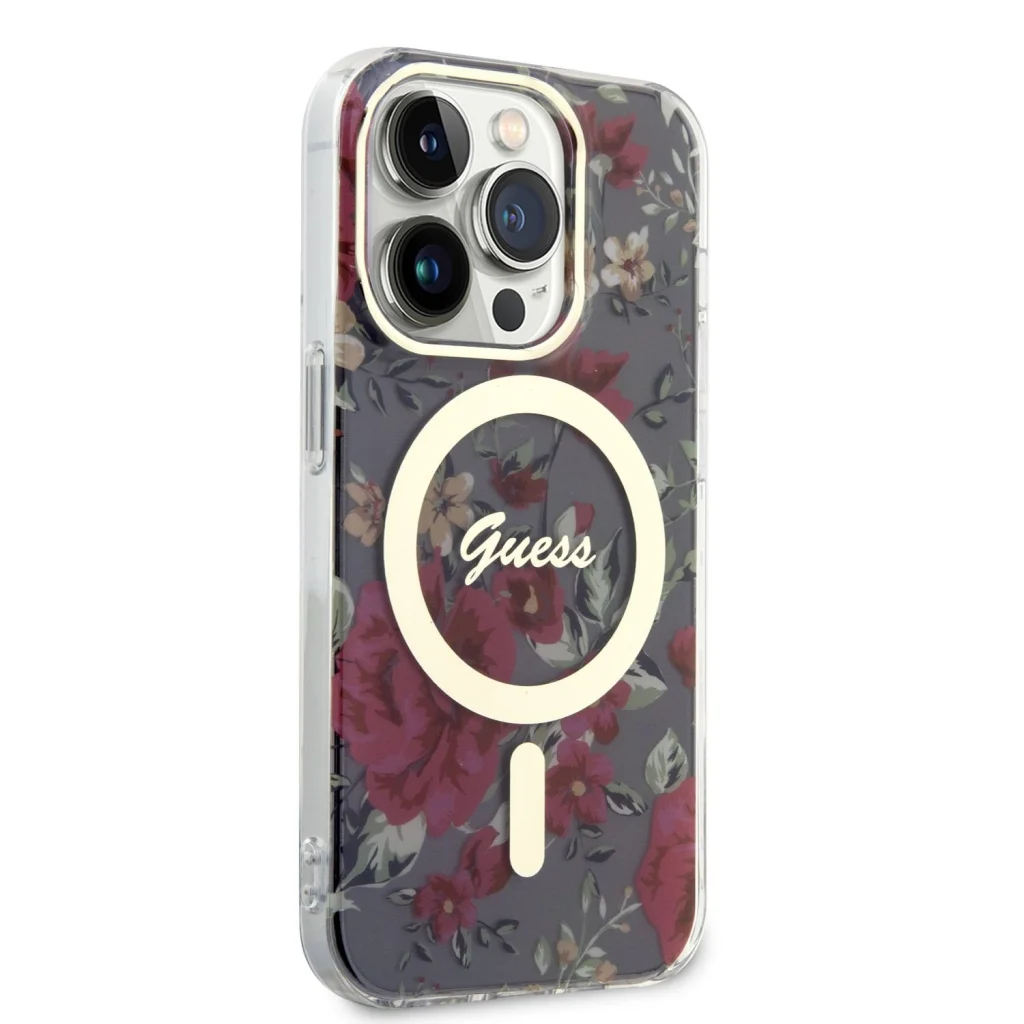 iPhone 14 Pro Guess PC/TPU Flowers IML MagSafe kompatibilis tok (GUHMP14LHCFWSA)