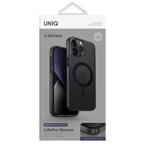 A UNIQ LifePro Xtreme egy hibrid telefontok az AirMax™ 360° technológiával, mely hatékony védelmet nyújt az iPhone 14 Pro Max készüléknek a mindennapi veszélyek ellen, miközben a Slim & Clear dizájn kiemeli a telefon természetes szépségét. TPU anyagból készül, amely rugalmas, mégis erős keretet alkot, biztonságosan körülöleli a készüléket, védelmet és karcsú, minimalista megjelenést biztosítva. A tok légpárna technológiával van kiegészítve a sarkokban, ami még jobb védelmet nyújt esetleges leejtéskor. Tartósságát egy 6 Feet Concrete tanúsítvány igazolja. Az antistatikus réteg megakadályozza a por felhalmozódását és minimalizálja a karcolódásokat. Integrált gombfedőkkel és precíz kivágásokkal rendelkezik a portok számára. A megemelt szélek védelmet nyújtanak a képernyőnek és a kamerának a karcolások ellen sík felületre helyezéskor. A tok mágneses gyűrűvel van ellátva, amely kompatibilis a MagSafe vezeték nélküli töltővel, gyors és egyszerű töltést biztosítva. Szín: Fekete