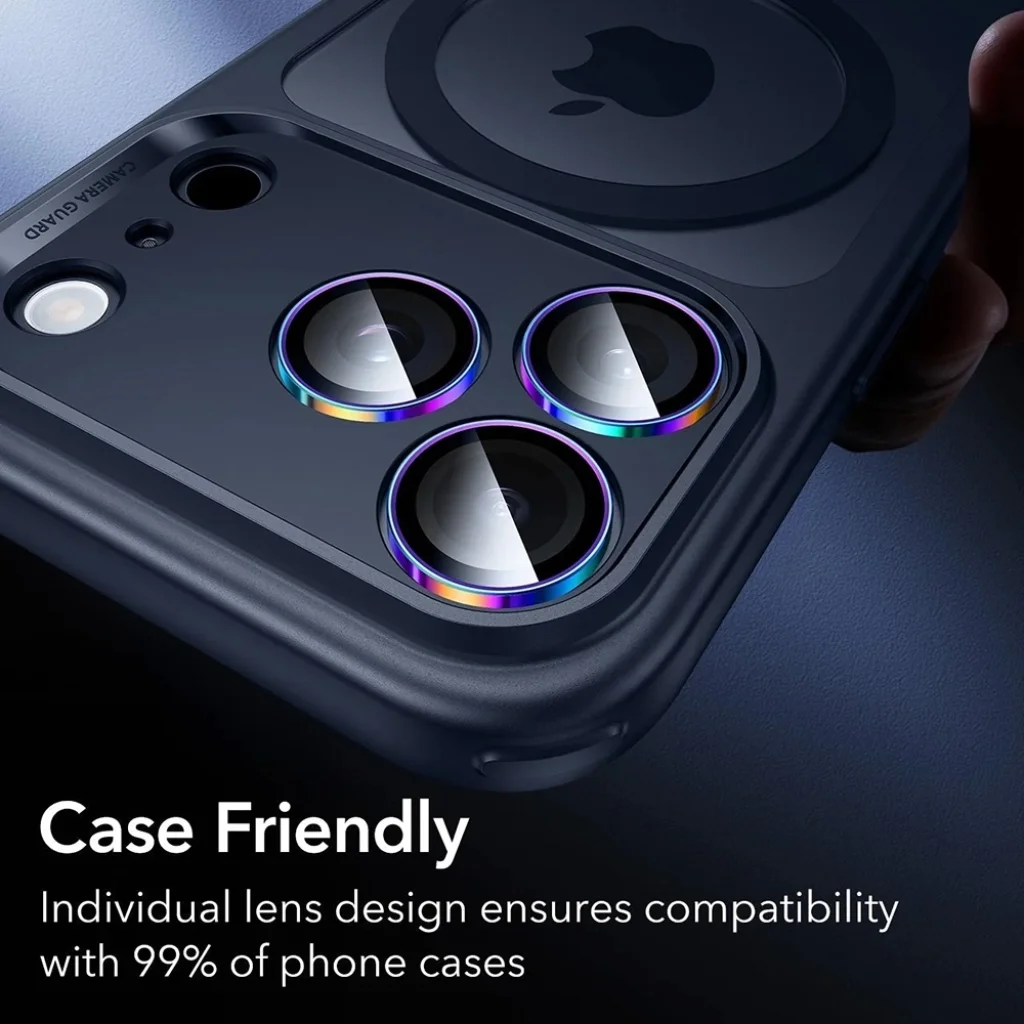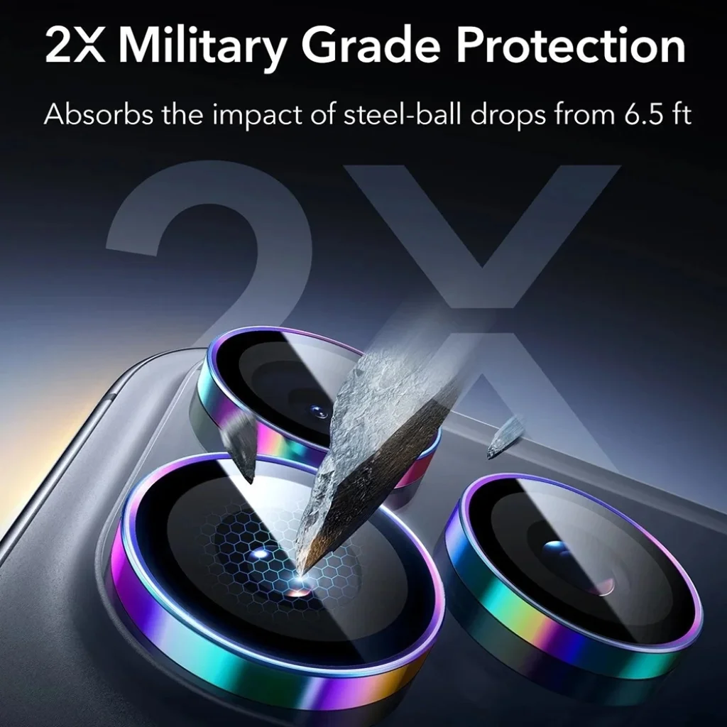 Védje meg iPhone készüléke kamera lencséit anélkül, hogy kompromisszumot kötne a stílus és a képminőség terén. Az ESR Armorite kamera lencsevédők prémium üvegfóliát kínálnak lenyűgöző színjátszó hatással, egyedi megjelenést kölcsönözve telefonjának, miközben maximális védelmet biztosítanak.
