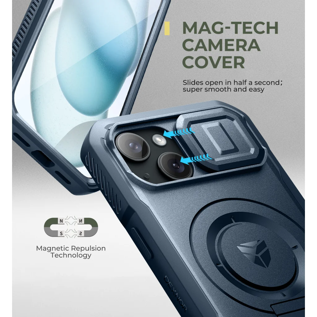 Az iPhone 15 Dexnor MagSafe tok, kihajtható állvánnyal és kék, ütésálló kivitelével, a tökéletes választás azok számára, akik kompromisszumok nélküli védelmet és funkcionalitást keresnek telefonjukhoz. Ez a robusztus tok nemcsak megóvja készülékét a mindennapi igénybevételektől és a legkeményebb kalandok során is, hanem intelligens kiegészítőkkel teszi még sokoldalúbbá az iPhone 15 használatát.