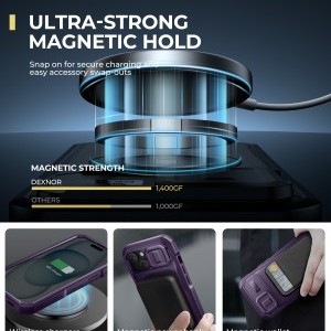Tapasztald meg a MagSafe technológia erejét a Dexnor tokkal! Az 1400 GF-es mágneses tartóerő messze meghaladja a hasonló tokok képességeit, így biztosítva, hogy iPhone 15-öd szilárdan illeszkedjen minden MagSafe kiegészítőhöz. Legyen szó vezeték nélküli töltőről, mágneses autós tartóról, power bankról vagy kártyatartóról, telefonod mindig biztonságban és a helyén marad, bármilyen helyzetben is légy.