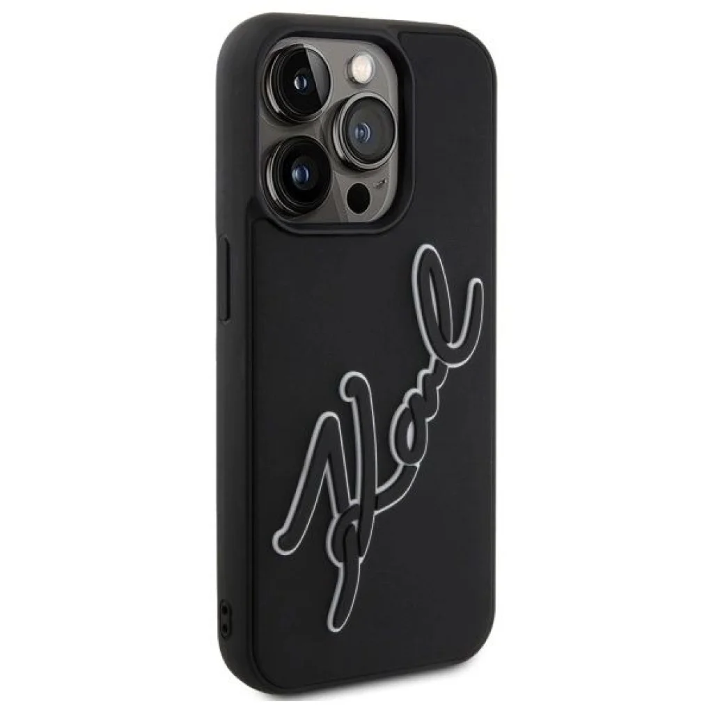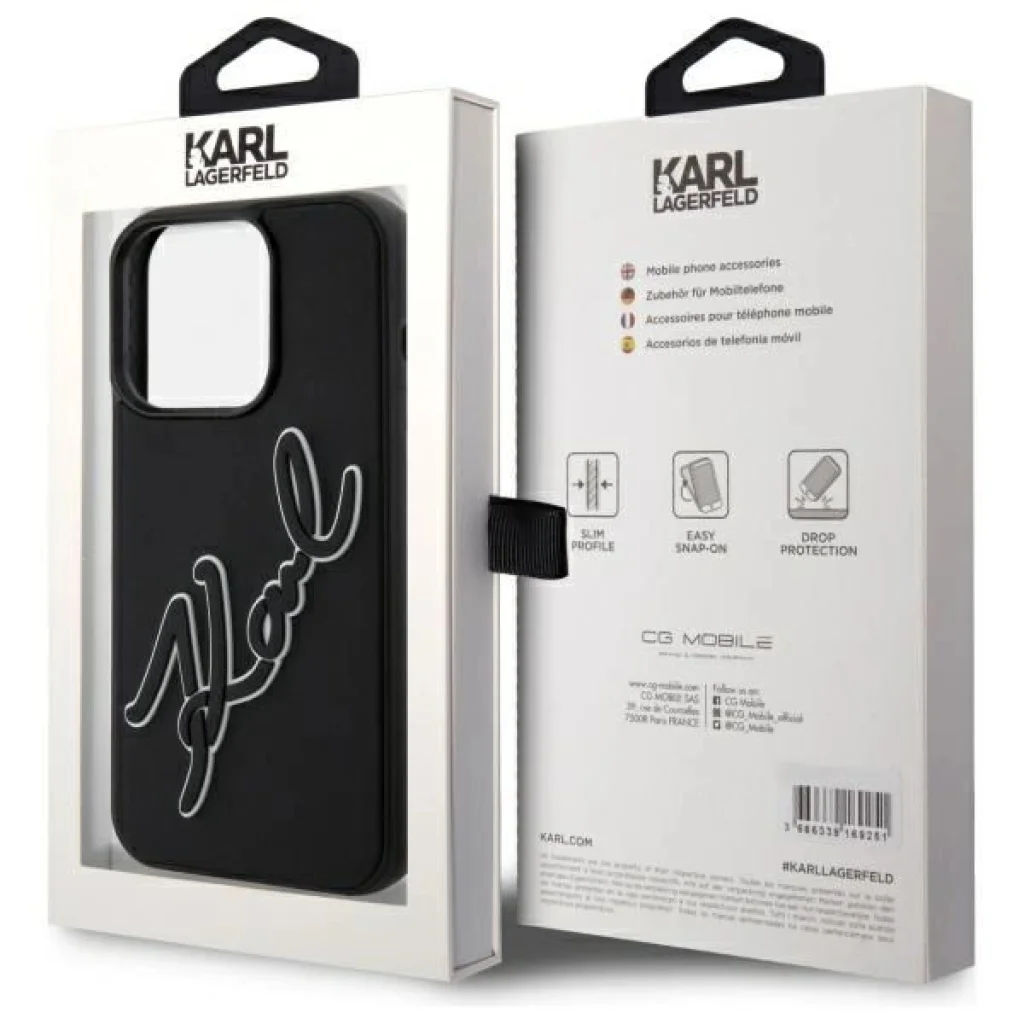 Egyedi megjelenés és kivételes minőség: Ez a stílusos tok minimalista dizájnjával tűnik ki, szembetűnő, háromdimenziós "Karl" logóval, gumiból készült 3D alkalmazás formájában, amely mélységet és karaktert ad.