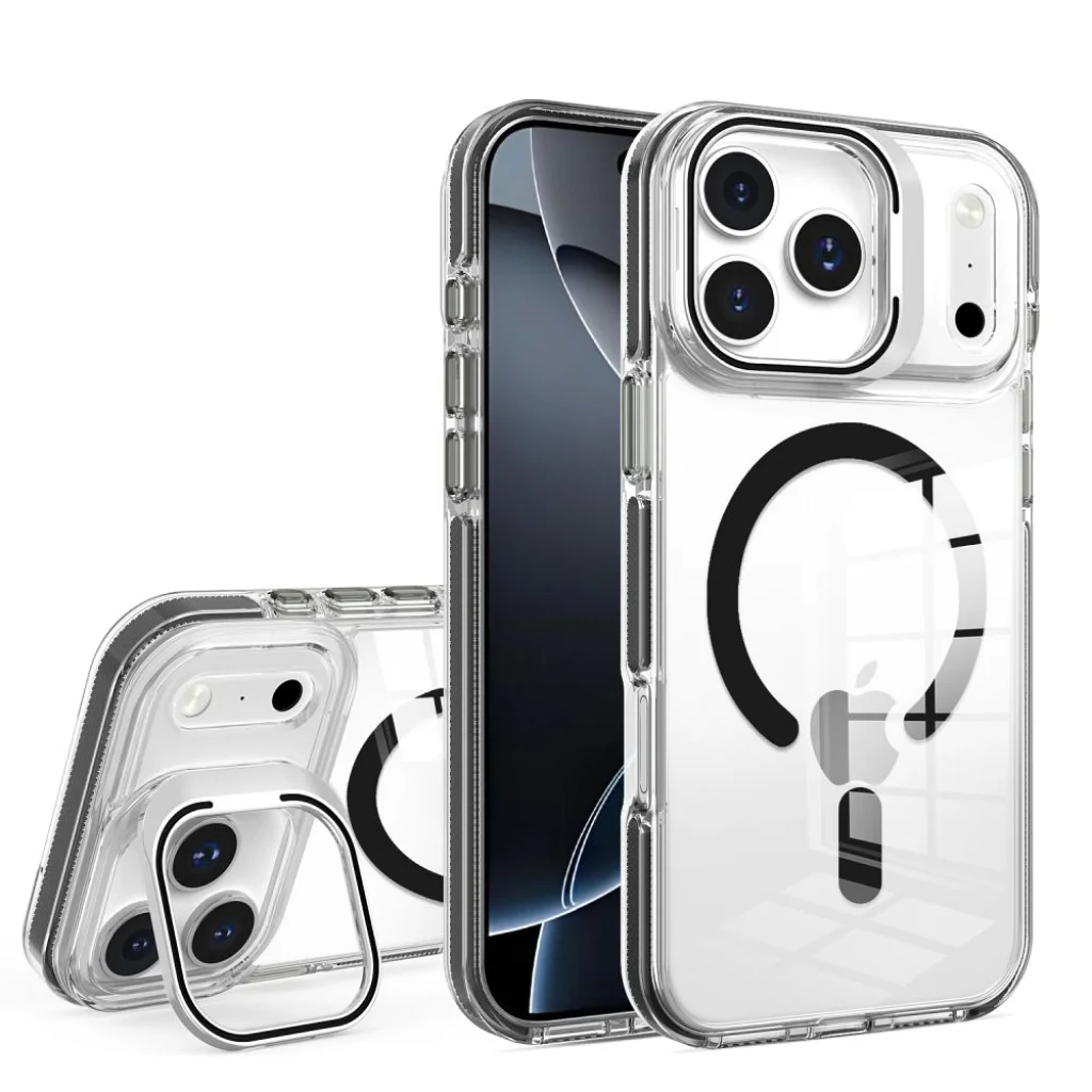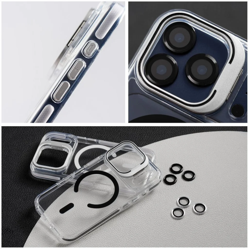 A LENS MAG COVER egy átfogó védelmi megoldás, amely három kulcsfontosságú erőt ötvöz: teljes MagSafe kompatibilitást, egy innovatív, beépített állványt, és kompromisszummentes lencsevédelmet. Hibrid konstrukciójának és magas átlátszóságának köszönhetően ez a tok ideális választás azok számára, akik a maximális funkcionalitást keresik anélkül, hogy feladnák a készülék esztétikáját. Teljes védelem hibrid konstrukcióval (PC + TPU) A tok prémium szintű védelmet nyújt hibrid felépítése révén. A merev polikarbonát (PC) hátlap hatékonyan elnyeli az ütés energiáját és megakadályozza a készülék hajlítását, míg a rugalmas TPU oldalak könnyű telepítést és biztos fogást garantálnak. Megemelt szélek: A kijelző és a kamera sziget körüli szélek megfelelően megemeltek, megvédve a kritikus felületeket a sík felületekkel való közvetlen érintkezéstől. Lencsevédelem: A tok külön védő edzett üveg pajzsokkal érkezik, amelyek minden lencsére alkalmazva biztosítják a kamera optika kompromisszummentes védelmét. MagSafe kompatibilitás és vezeték nélküli töltés Az erős beépített mágnes garantálja a teljes és stabil együttműködést a teljes MagSafe ökoszisztémával. Ez nemcsak hatékony vezeték nélküli töltést tesz lehetővé, hanem biztonságos rögzítést is autós tartókhoz és más mágneses kiegészítőkhöz. Ez alapvető jellemzője egy prémium eszköz végfelhasználójának. Integrált állvány és átlátszó dizájn Az innovatív, hajtható állvány a kamera sziget keretébe van beépítve, stabil támaszt biztosítva médiatartalmak vízszintes megtekintéséhez. Magas átlátszóság: A tok anyaga magas átlátszóságú, kiemelve az okostelefon eredeti formatervezését. Esztétikai részletek: A kontrasztos, színes oldalsó gombok és a keret modern akcentust adnak és javítják a kattintási érzékenységet. Műszaki adatok: Anyag: TPU + PC Hybrid (puha oldalak, kemény hátlap) MagSafe kompatibilitás: IGEN Vezeték nélküli töltés támogatás: IGEN Mágneses tartó támogatás: IGEN Csomagolás: Doboz