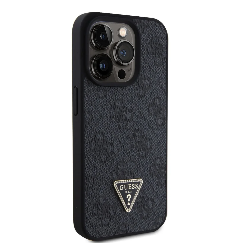 iPhone 15 Pro Max Guess PU 4G Strass Triangle Metal Logo tok fekete (GUHCP15XP4TDPK)