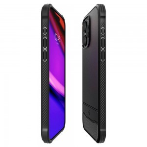 Viszonylag vékony védőtok. Tartós és rugalmas TPU anyagból készült, amely ellenáll a kopásnak. A Rugged Armourt fényes szénszál borítja, amely elegáns karbon textúrát hoz létre. A termék ideális, teljesen működőképes, nem korlátozza a hozzáférést a külső portokhoz, és hatékonyan védi a készüléket a karcolásoktól és leesésektől. A tok a MagSafe vezeték nélküli technológiával kompatibilis gyűrűvel van felszerelve. A mágnesgyűrű biztosítja a maximális töltési hatékonyságot, valamint a MagSafe funkcióval rendelkező tartozékok gyors és egyszerű csatlakoztatását. A Rugged Armor alkalmassági teszteknek vetették alá, és megkapta a MIL STD 810G-516.6 tanúsítványt, ami azt jelenti, hogy 26-szor esett le 2 méteres magasságból. Minden Spigen termék kopásállóságát és pontos illeszkedését tesztelték, hogy kiváló minőségű tokot biztosítsanak.