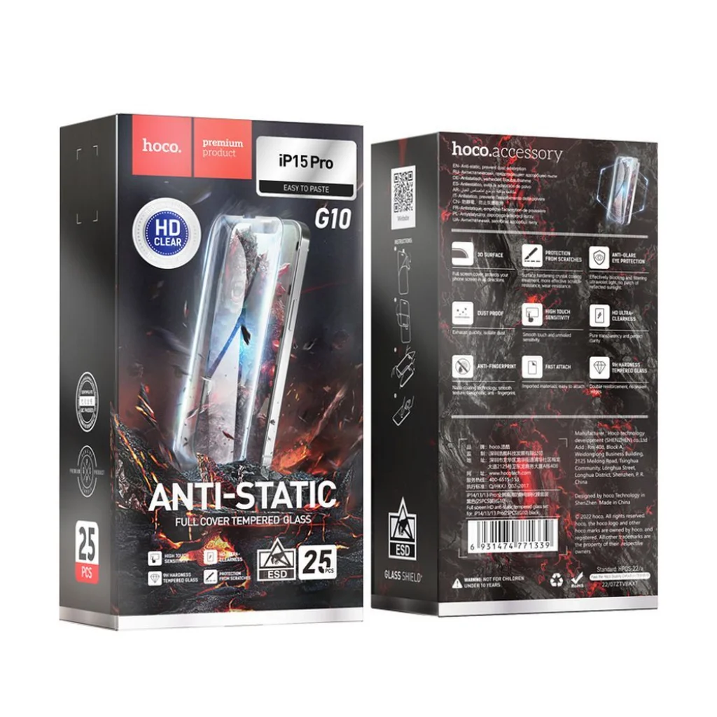 Huszonöt darab egyenként csomagolt HOCO iPhone üvegfólia készlet. Az üveg teljes felületén ragasztó található, ami tökéletes tapadást biztosít, így nem marad hely a szennyeződésnek vagy pornak. Az antisztatikus bevonat megakadályozza a por lerakódását. Az üveg az egész kijelzőt fedi, beleértve a kijelző ívét is. A teljes felületen lévő ragasztó biztosítja a tökéletes tapadást a kijelzőhöz, légbuborékok nélkül. Az oleofób bevonat biztosítja a kijelző átláthatóságát és ellenállást a ujjlenyomatokkal és szennyeződésekkel szemben. Az antisztatikus bevonat megakadályozza a por lerakódását. A magas keménységi tényező megakadályozza a sérüléseket és karcállóvá teszi a kijelzőt. A kis vastagságnak köszönhetően az üveg gyakorlatilag észrevehetetlen és nem vastagítja a telefont. Tulajdonságok: Ragasztó: Teljes felületen Kijelző fedettsége: az egész kijelzőt lefedi, beleértve a kijelző ívét Anyag: 100% edzett üveg Vastagság: 0,33 mm Megjelenés: fekete kerettel Oleofób bevonat: igen Speciális tulajdonságok: antisztatikus bevonat, teljes ragasztófelület, tökéletes tapadás, könnyű telepítés A készlet tartalma: - edzett üveg - nedves kendő - száraz kendő - pormentesítő matrica