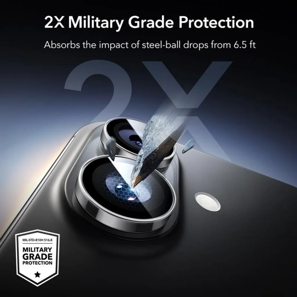 Az ESR Armorite megerősített üvegből készült lencsevédők precízen illeszkednek az objektívek teljes felületére, átfogó védelmet nyújtva minden irányból. A különálló, gyűrűs kialakítás nem csupán erős védelmet biztosít, hanem a telefontokok 99%-ával is kompatibilis, így nem kell kompromisszumot kötnie a védelem és a tokhasználat között.