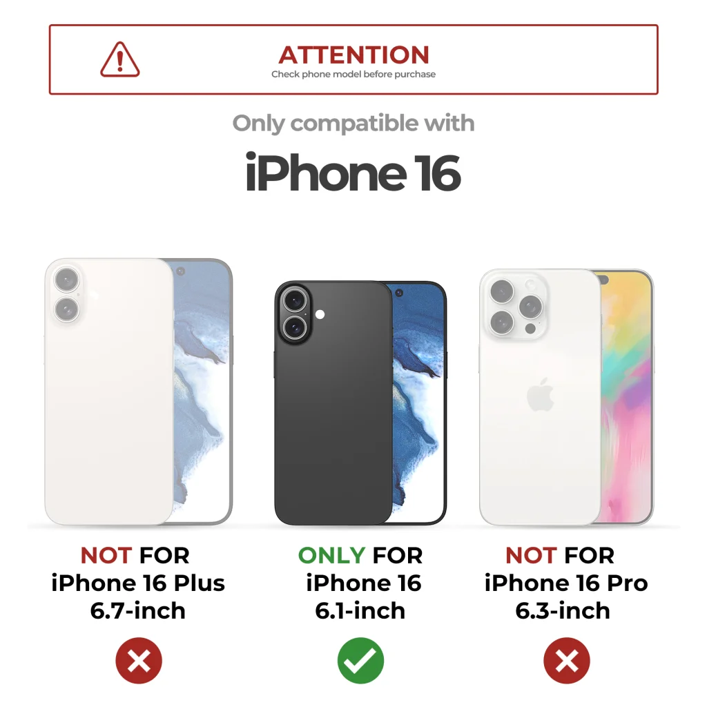 A Dexnor MagSafe tokot kifejezetten az iPhone 16 (6.1 hüvelykes) modellhez terveztük, biztosítva a pontos kivágásokat az összes gombhoz és porthoz. Kérjük, vásárlás előtt győződjön meg telefonja pontos modelljéről, mivel nem kompatibilis az iPhone 16 Plus (6.7 hüvelykes) és az iPhone 16 Pro (6.3 hüvelykes) változatokkal.