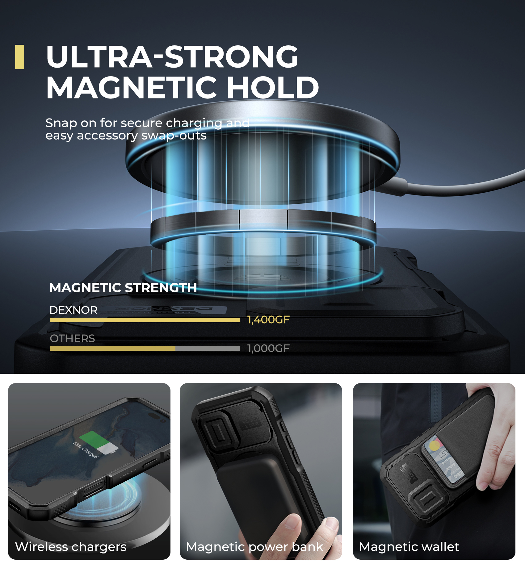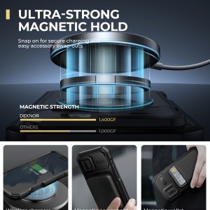 Tapasztalja meg a MagSafe erejét a Dexnor tokkal! Az akár 1400g mágneses tartóerővel (szemben más tokok 1000g-os értékével) ez a robusztus tok biztonságosan rögzíti telefonját az összes MagSafe tartozékhoz. Legyen szó vezeték nélküli töltőről, autós tartóról, mágneses power bankról vagy pénztárcáról, telefonja stabilan és biztonságosan a helyén marad bármilyen helyzetben.
