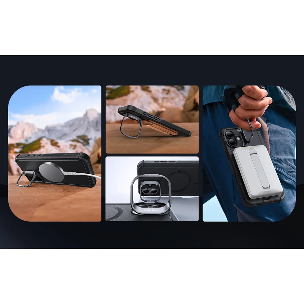 iPhone 16 Fekete ESR Cyber Tough tok beépített állvánnyal (HaloLock)