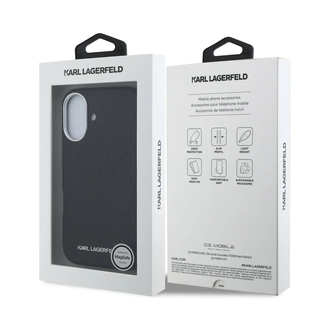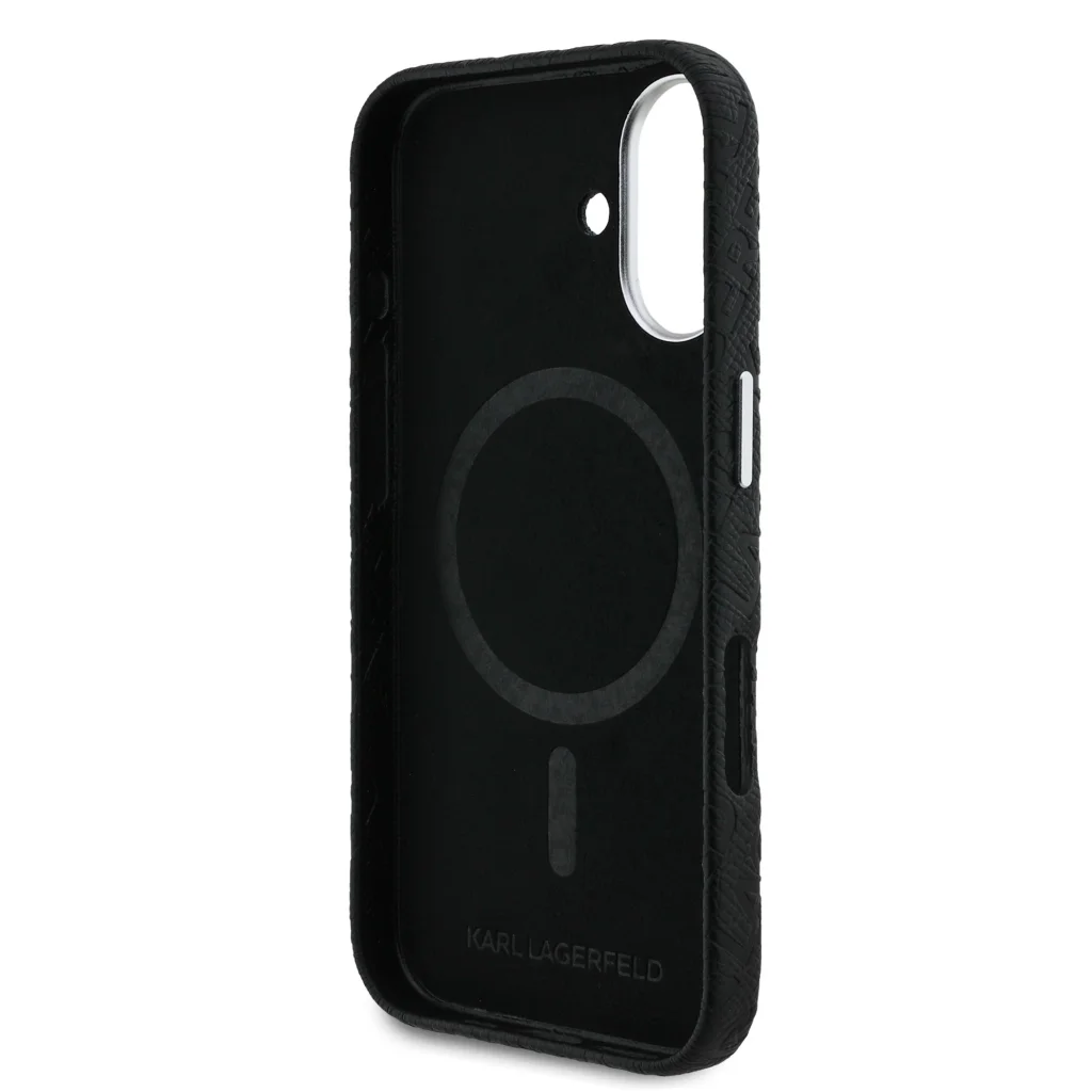 A Karl Lagerfeld Grained PU Repeated Logo MagSafe hátlap a tökéletes kiegészítő a telefonod és ruhatárad számára, ötvözve a funkcionalitást és a stílust egyben.