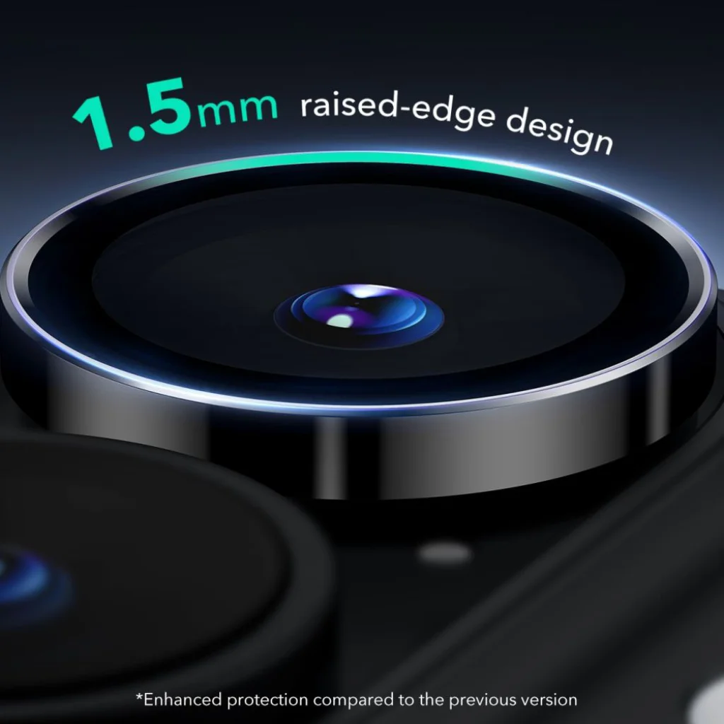 Az innovatív 1.5mm-es megemelt élű dizájn további védelmi réteget biztosít, minimalizálva a közvetlen érintkezést a felületekkel és még hatékonyabban óvva a lencséket a sérülésektől. Ez a fejlesztés még a korábbi verziókhoz képest is fokozott védelmet nyújt.
