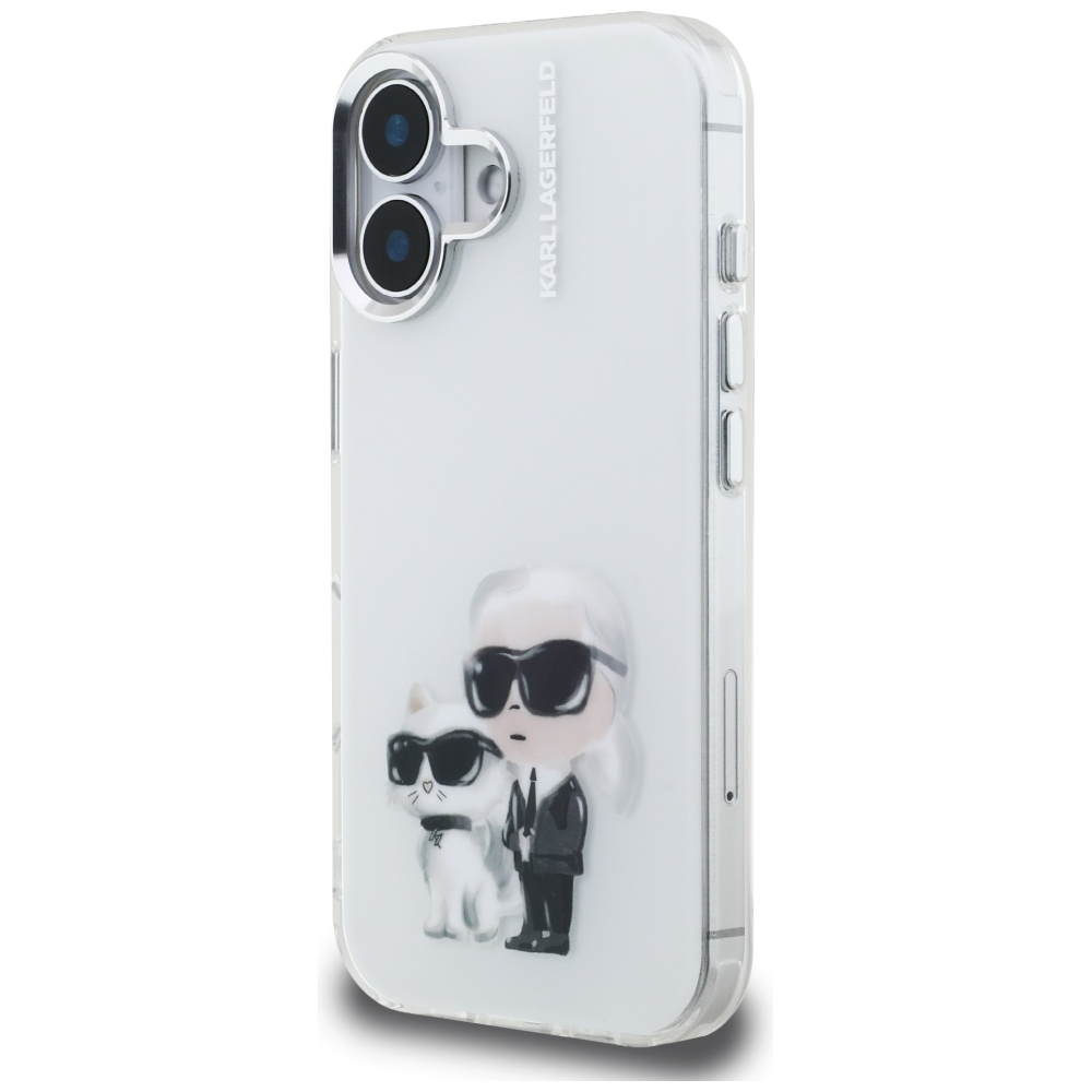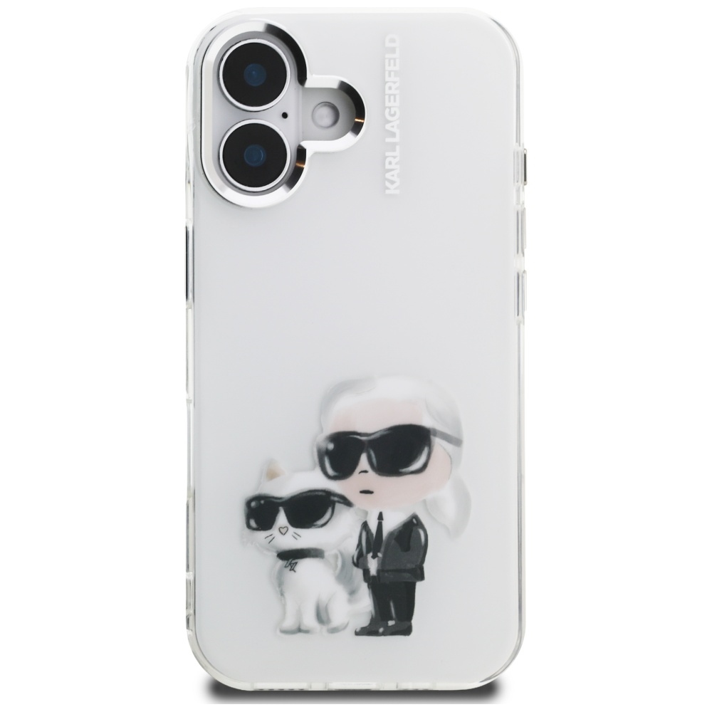 iPhone 16 Karl Lagerfeld IML Aquarelle Karl & Choupette & Logo fehér tok