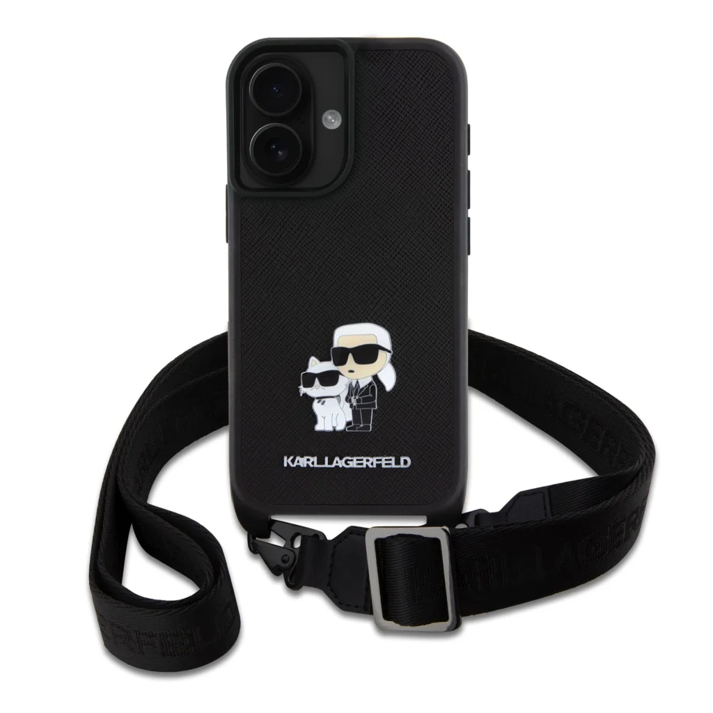 A prémium Karl Lagerfeld Saffiano Crossbody Pántos Karl és Choupette fliptokkal nemcsak elegáns védelmet biztosíthatsz telefonodnak, hanem praktikus válltáskát is.